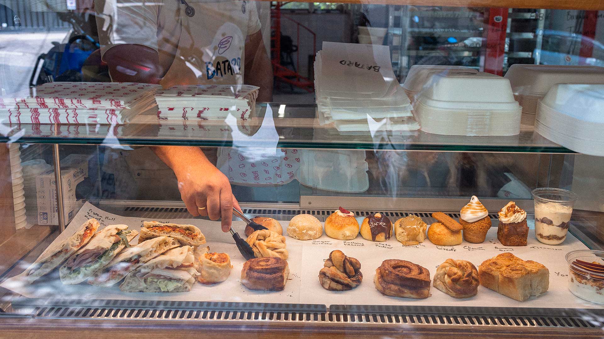 Σάββατο μεσημέρι στο Παγκράτι, τέλη Αυγούστου. Η πόλη είναι ακόμα μισοάδεια, αλλά στην Πύρρωνος –έναν ήσυχο δρόμο, όχι κεντρικό– σχηματίζεται ουρά. Δεκάδες άνθρωποι περιμένουν έξω από ένα μαγαζί μια σταλιά. Όχι για φαγητό, ούτε για καφέ. Περιμένουν να πάρουν ψωμί από το Batard, τον νέο φούρνο της γειτονιάς. Είναι η πρώτη μέρα λειτουργίας του και ούτε οι ίδιοι οι ιδιοκτήτες δεν περίμεναν τέτοια υποδοχή.