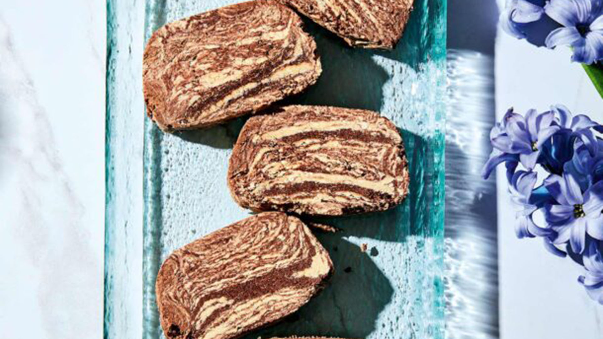 - Με μια σπάτουλα τον απλώνουμε και τον πιέζουμε να έχει το ίδιο περίπου πάχος και σχήμα με τον λευκό χαλβά που βρίσκεται από κάτω του.