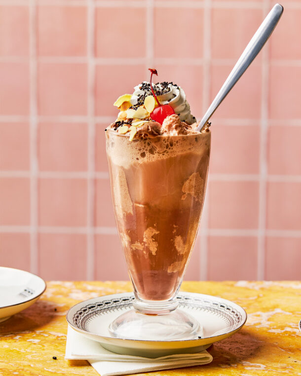 - Σερβίρουμε το Ice cream soda με μεγάλο κουτάλι.