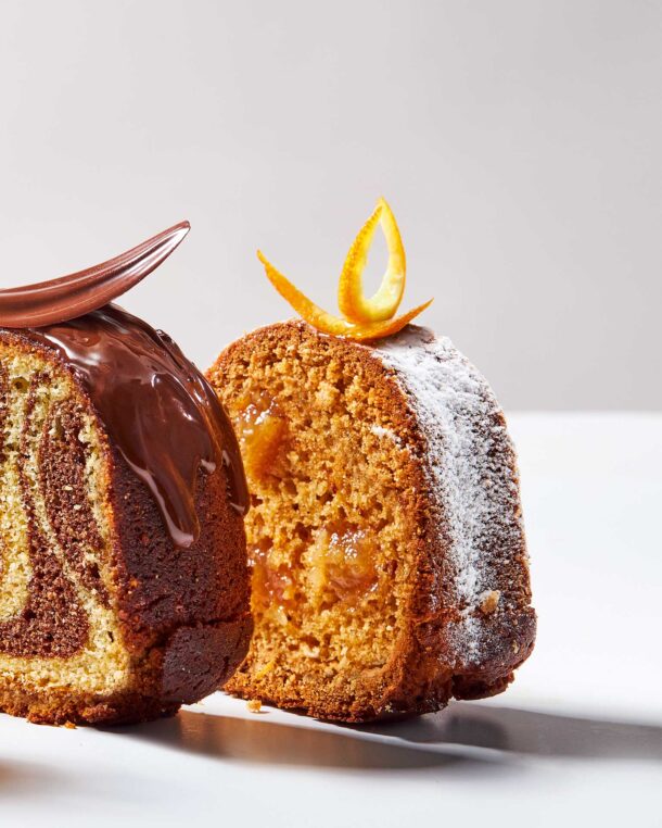 - Για το κέικ πορτοκάλι με γέμιση μαρμελάδα πορτοκαλιού, ξεκινάμε προθερμαίνοντας τον φούρνο στους 180°C, στις αντιστάσεις πάνω κάτω. Βουτυρώνουμε και αλευρώνουμε μια φόρμα για κέικ με τρύπα στη μέση.