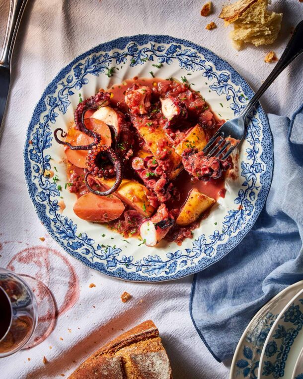 Το πιο «δικό μας» κρασάτο φαγητό, με τα ζουμάκια του χταποδιού να μαγειρεύονται με έναν συνδυασμό κρασιών, ντομάτες, μπαχαρικά και φλούδες πορτοκαλιού, για συναρπαστικό άρωμα. Αν δεν έχουμε διαθέσιμη Μαυροδάφνη, ανακατεύουμε 80 γρ. κόκκινο κρασί με 1 κουτ. γλυκού μέλι.