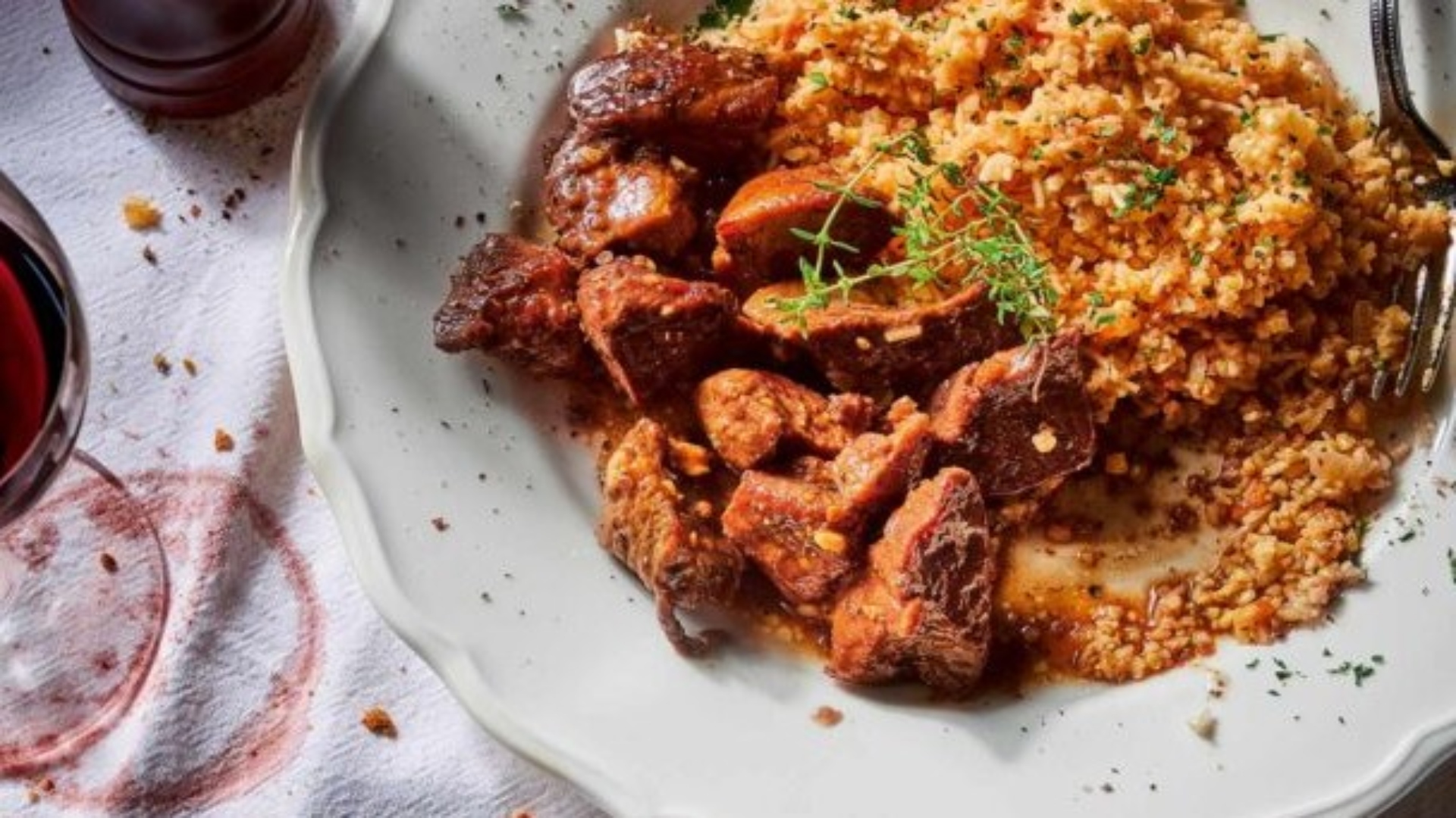 - Σερβίρουμε τα αφέλια μαζί με το πιλάφι πλιγούρι και, δίπλα, όσο γιαούρτι θέλουμε.