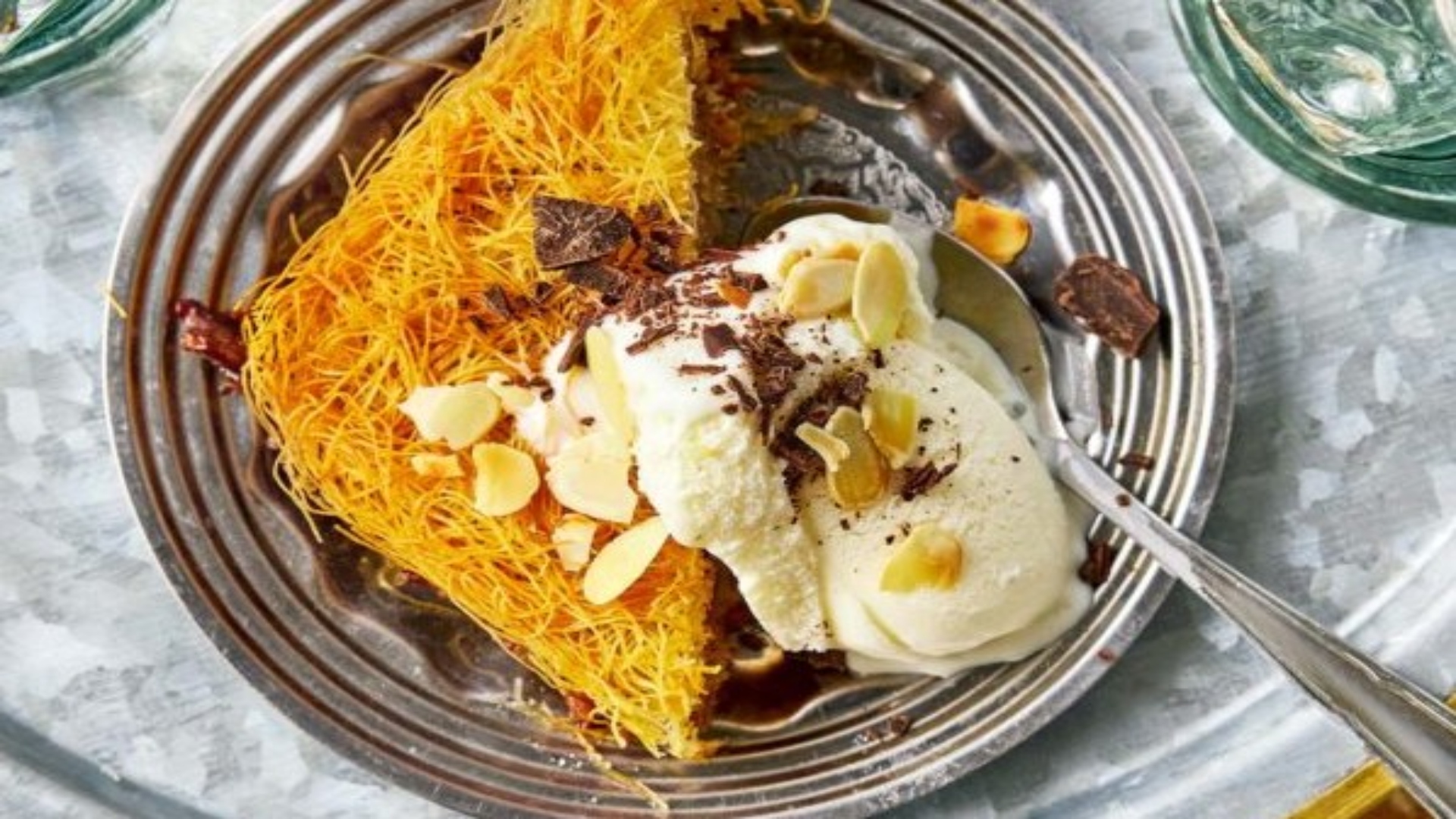 - Για το παγωτό εκμέκ (εκμέκ κανταΐφι με παγωτό καΐμακι), ξεκινάμε με το παγωτό καϊμάκι.