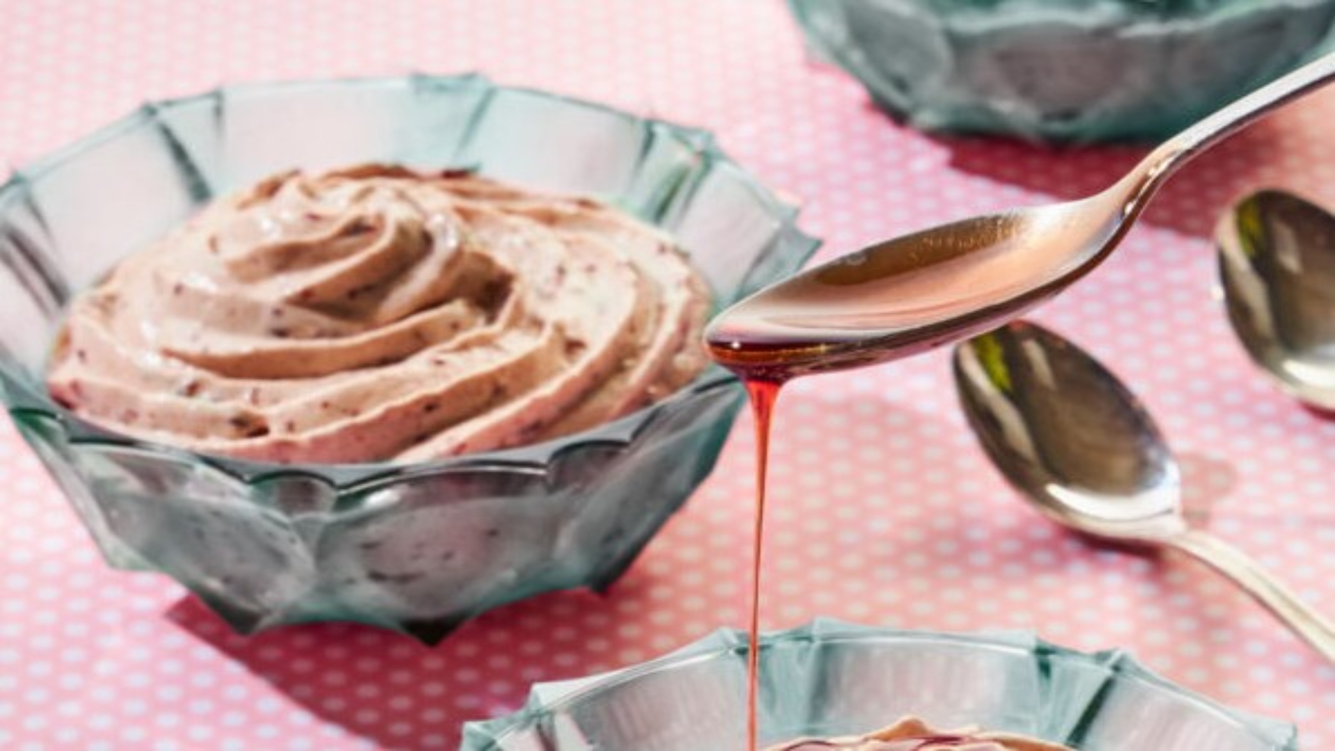 - Μοιράζουμε τη μους σε 4 ατομικά μπολ ή φαρδιά κολονάτα ποτήρια.