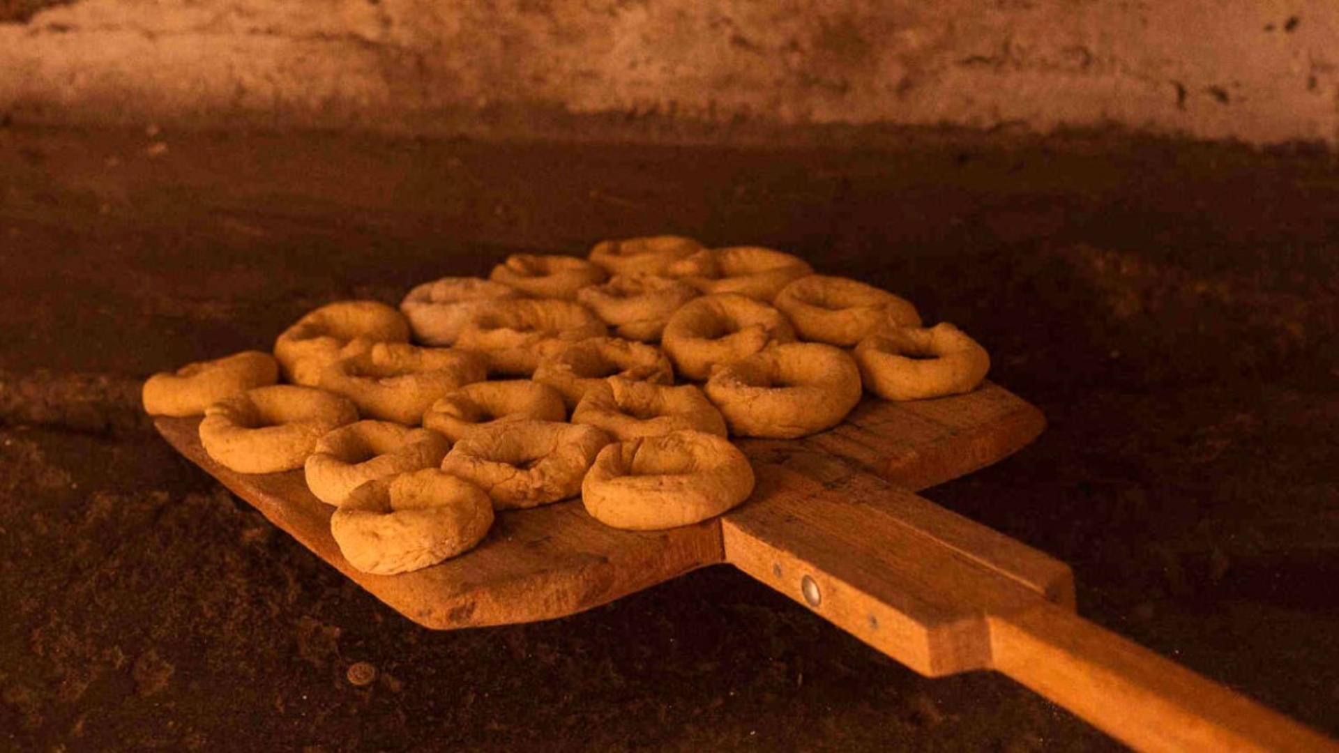 Ο Γιώργος πιέζει μια φραντζόλα με το δάχτυλο: η λακκουβίτσα μένει σταθερή, χωρίς να επανέρχεται, βέβαιο σημάδι ότι το προζύμι έχει κάνει πια τη δουλειά του και τα ψωμιά είναι έτοιμα για ψήσιμο. «Το προζύμι μας είναι… προϊστορικό, το έχουμε πάρα πολλά χρόνια», λέει ο Γιώργος καθώς ξεκινά η ομαδική τελετουργία του φουρνίσματος. Το πρώτο ψήσιμο διαρκεί 25 λεπτά. Οι φραντζόλες βγαίνουν καυτές, κρατούν όσες θέλουν για το σπίτι, για φρέσκο ψωμί, και μοιράζουν μπόλικες στη γειτονιά, γιατί έτσι είναι το έθιμο, ένας από τους τρόπους που το στάρι κρατάει δεμένη μια κοινότητα. Η Μαρία με τον γιο της και τις φίλες της χωρίζουν τις φραντζόλες στις φέτες τους, για το δεύτερο φούρνισμα, κρατάνε όμως στην άκρη τα αποκώλια, τις γωνίες από κάθε φραντζόλα δηλαδή, το καλύτερο κομμάτι του ψωμιού, ζεστές, τραγανές και αρωματικές, που τις θέλουν όλοι! Οι φέτες αραδιάζονται στον σβησμένο φούρνο, η πόρτα του πόρου κλείνει και οι φέτες θα μείνουν εκεί για ένα ολόκληρο βράδυ, να φρυγούν σιγανά και υπομονετικά μονάχα στη θέρμη που διατηρεί ο φούρνος, μέχρι το επόμενο πρωί που θα έχουν γίνει τραγανά παξιμάδια.