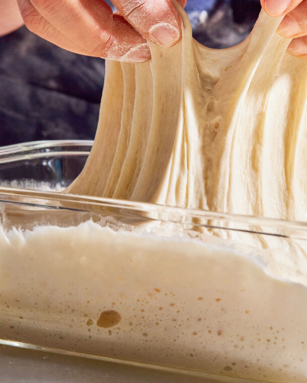 - Την πλάθουμε σε μπάλα, τη βάζουμε σε μπολ, καλύπτουμε με μεμβράνη και την αφήνουμε στην άκρη για 1 ώρα και 30 λεπτά, να ξεκουραστεί. Μετά, τη βάζουμε στο ψυγείο και την αφήνουμε για 24 ώρες.