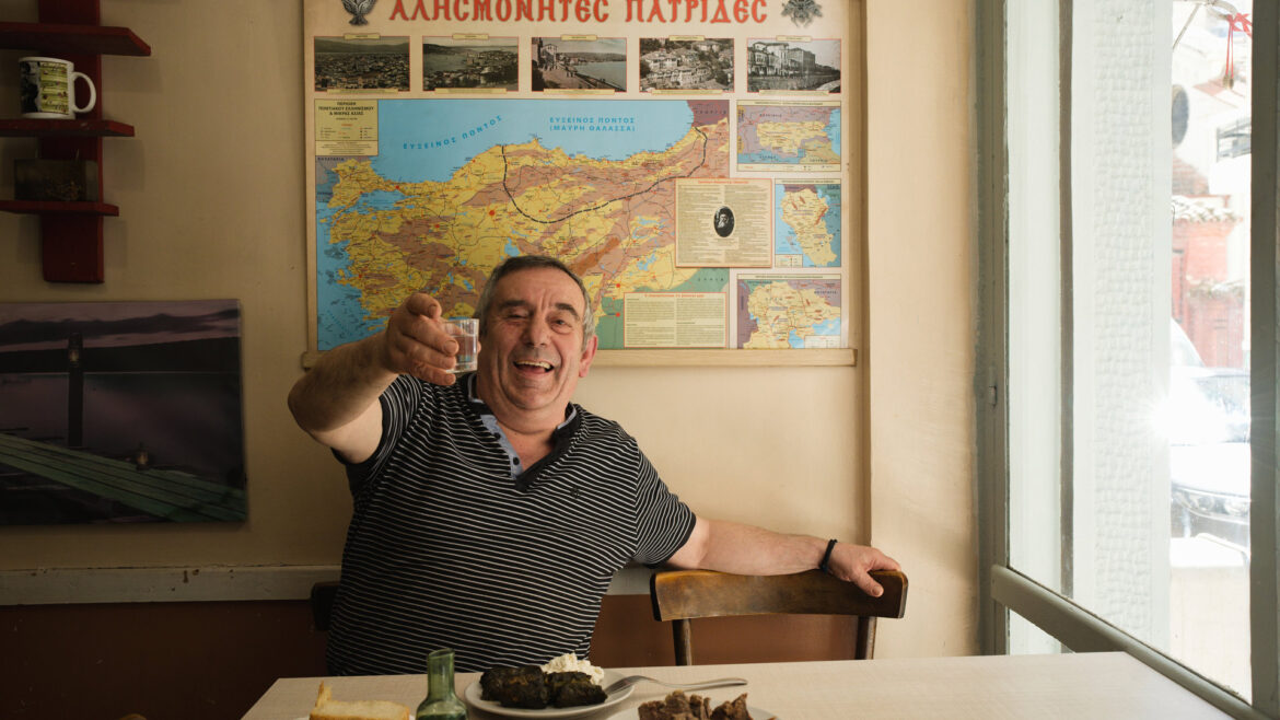 Ένα στενόμακρο δωμάτιο με 5-6 τραπέζια είναι το μαγαζί. Σε μια άκρη το οικιακό ψυγείο, στη μέση η ξυλόσομπα, στους τοίχους καρδαρισμένες αφίσες, ένας χάρτης του Πόντου. Ο ίδιος σε υποδέχεται, μαγειρεύει, σερβίρει. Όταν βρει ευκαιρία, το μεσημέρι, θα κάτσει σε μια άκρη να φάει και αυτός. «Τριάντα χρόνια είναι το μαγαζί. Μπήκα νέος και βγήκα…», λέει ο ίδιος που ήρθε στην Ελλάδα το 1990 από το Σοχούμι και το 1996 άνοιξε τον καφενέ του, σερβίροντας αποκλειστικά καφέ για τους ανθρώπους της γειτονιάς.