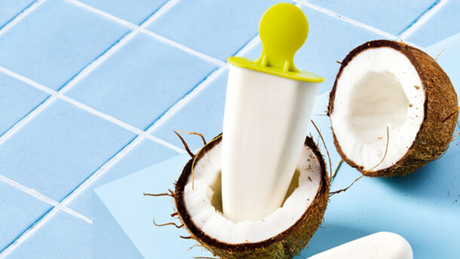 - Για να φτιάξουμε παγωτό ξυλάκι με γεύση καρύδα, αρχικά βάζουμε, σε μια μεγάλη κανάτα δοσομετρητή, την κρέμα γάλακτος, το γιαούρτι, το γάλα καρύδας, την κρέμα καρύδας και την τριμμένη καρύδα και ανακατεύουμε καλά με σύρμα.