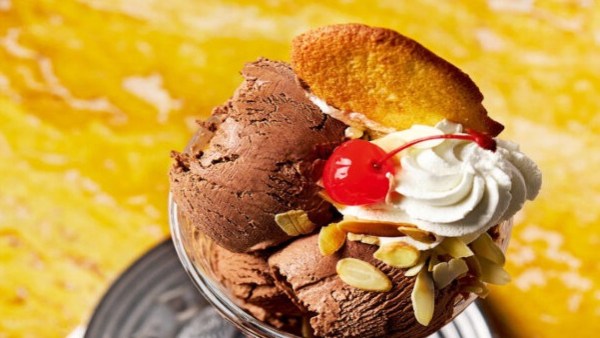 - Σερβίρουμε από 2 μπάλες παγωτό ανά ποτήρι, στολίζουμε με ροζέτες σαντιγί, περιχύνουμε με λίγο ακόμα σιρόπι και σκορπίζουμε μερικά καβουρδισμένα αμύγδαλα.