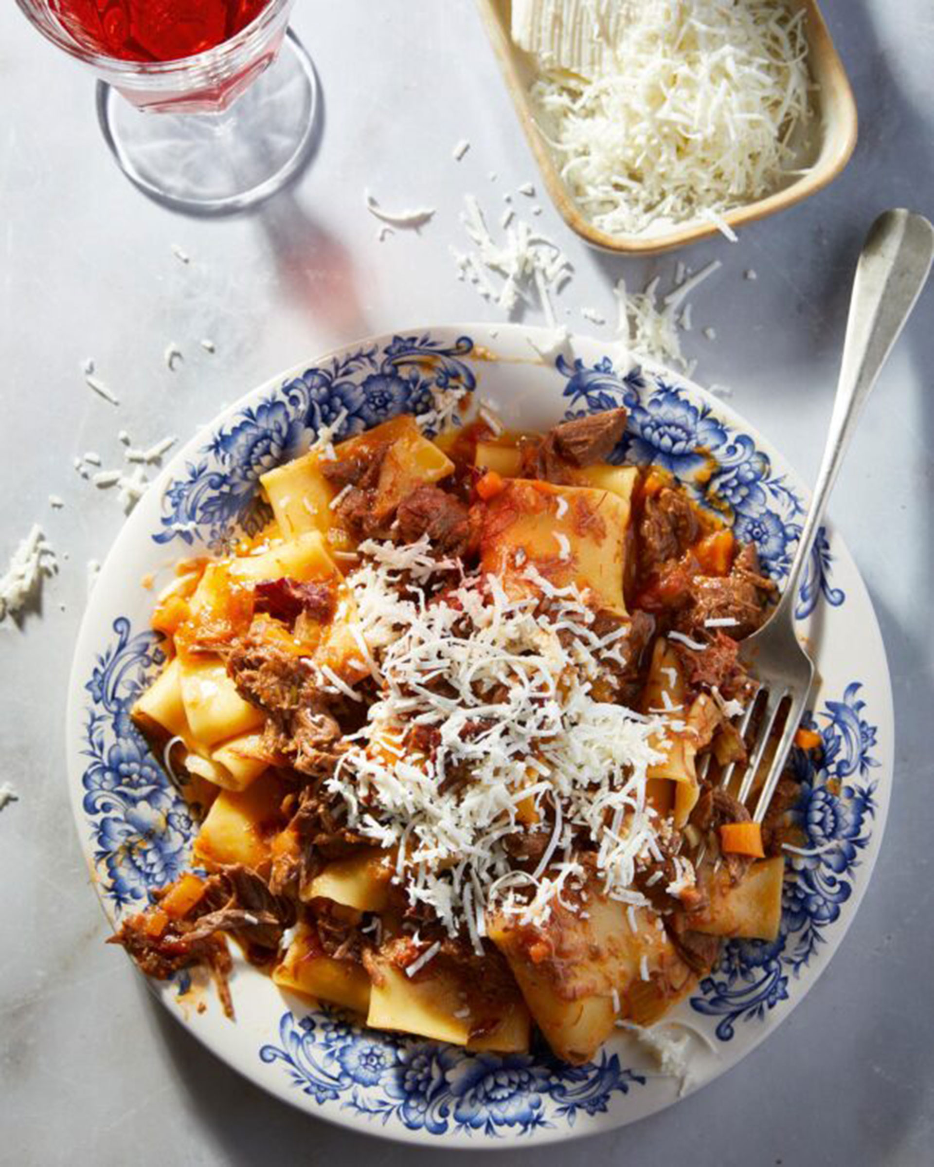 Συνοδεύουμε αυτό το υπέροχο ραγού με ζυμαρικά, κατά προτίμηση ριγκατόνι, πένες ή paccheri (σωληνωτά, σαν τεράστιο κοφτό μακαρονάκι) και πασπαλίζουμε με ένα ωραίο, παλαιωμένο κρητικό ανθότυρο.