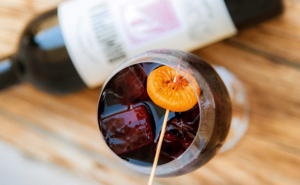 - Σουρώνουμε μέσα από ένα τουλπάνι ή πολύ ψιλή σήτα, κρατάμε τα σύκα ξεχωριστά και διατηρούμε τη σανγκρία στο ψυγείο.