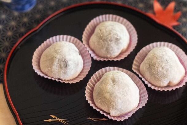 Στρογγυλά, με επικάλυψη ζυμαριού από ρυζάλευρο και άχνη και με γέμιση από γλυκιά πάστα anko, από ασιατικά κόκκινα φασόλια azuki. Την πάστα τη βρίσκουμε έτοιμη σε όλα τα καταστήματα με ασιατικά και έθνικ τρόφιμα.