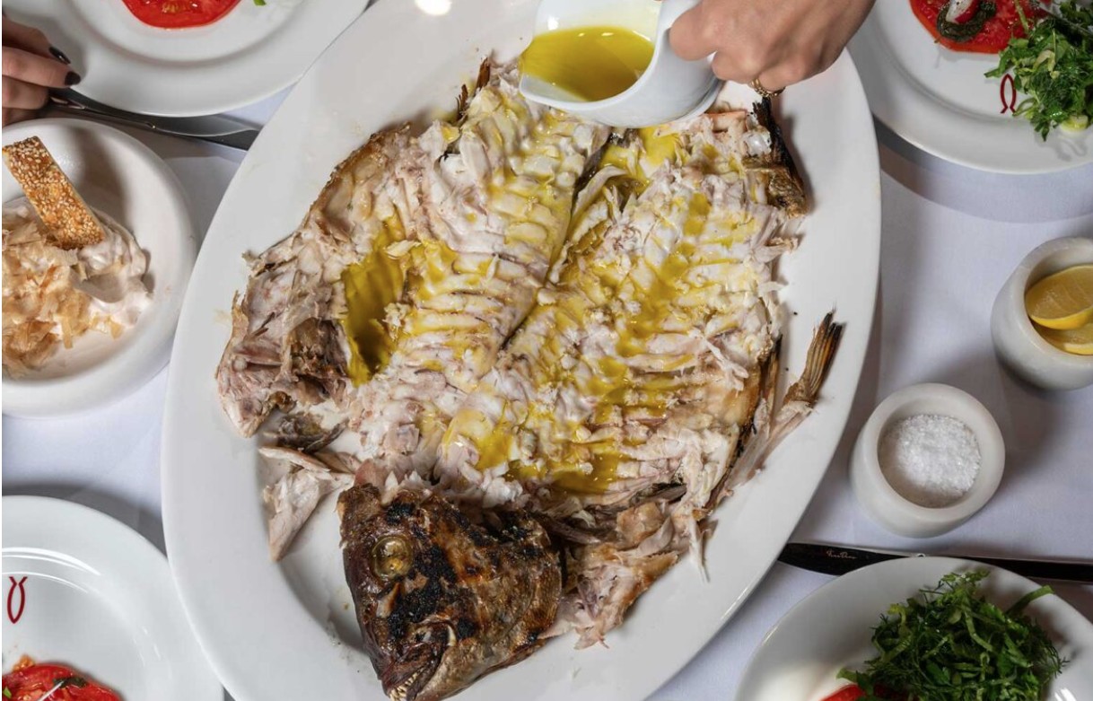 Δεν μπορώ να μην αναφερθώ στο πιάτο με το οποίο ξεκινήσαμε: φέτες αυγοτάραχου Μεσολογγίου, σερβιρισμένες δίπλα σε κομματάκια λευκής σοκολάτας, βούτυρο και φρυγανισμένο ψωμί – ένα «αναμνηστικό» που η σεφ έχει κρατήσει από τις μέρες του Funky Gourmet. Απλώνεις το βούτυρο στο ψωμί, βάζεις από πάνω το αυγοτάραχο και τελειώνεις με τη λευκή σοκολάτα. Μια μπουκιά απολαυστικά δεμένη, που μένει στο στόμα περισσότερο απ’ όσο περιμένεις.