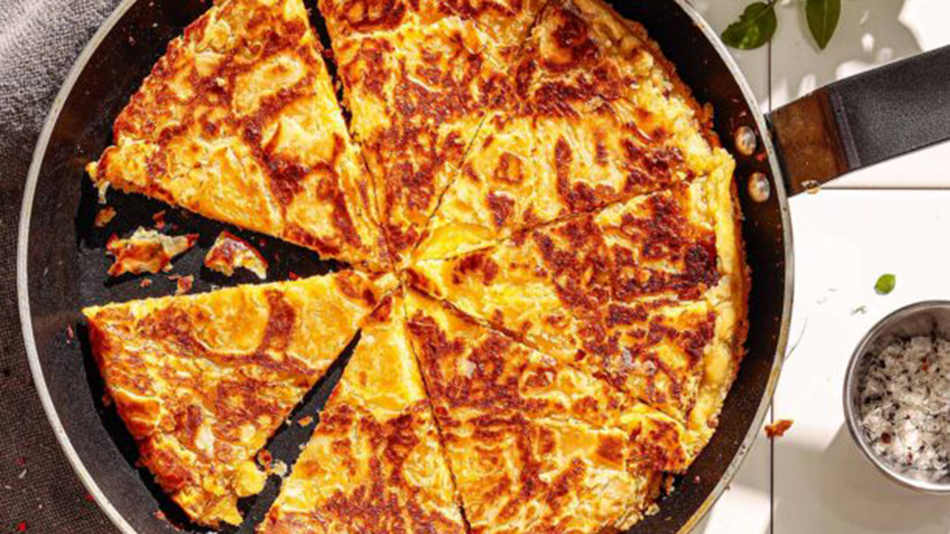 - Ανασηκώνουμε με σπάτουλα την πίτα που φτιάξαμε και ρίχνουμε στο τηγάνι άλλη 1 κουτ. σούπας λάδι.