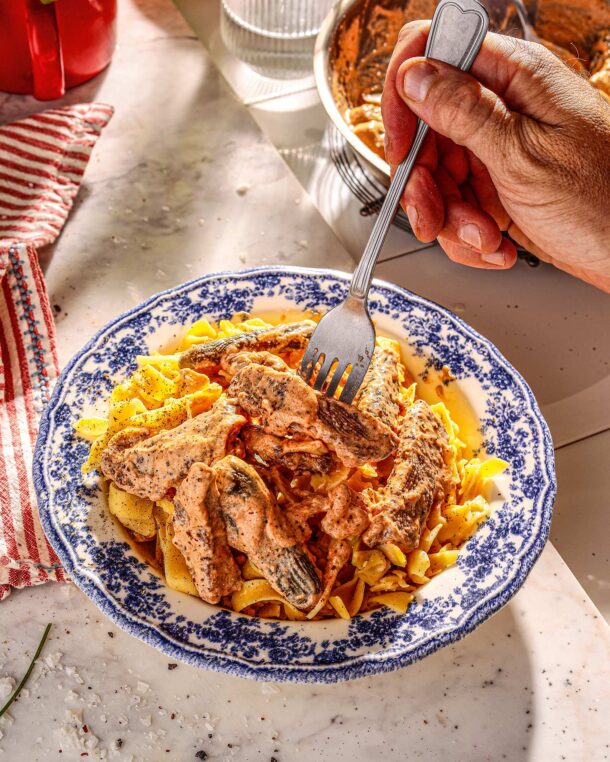 Η κλασική συνταγή του Στρογκανόφ σε μια γρήγορη εκδοχή που δεν ξεφεύγει από τη φιλοσοφία και τα βασικά υλικά της αυθεντικής.