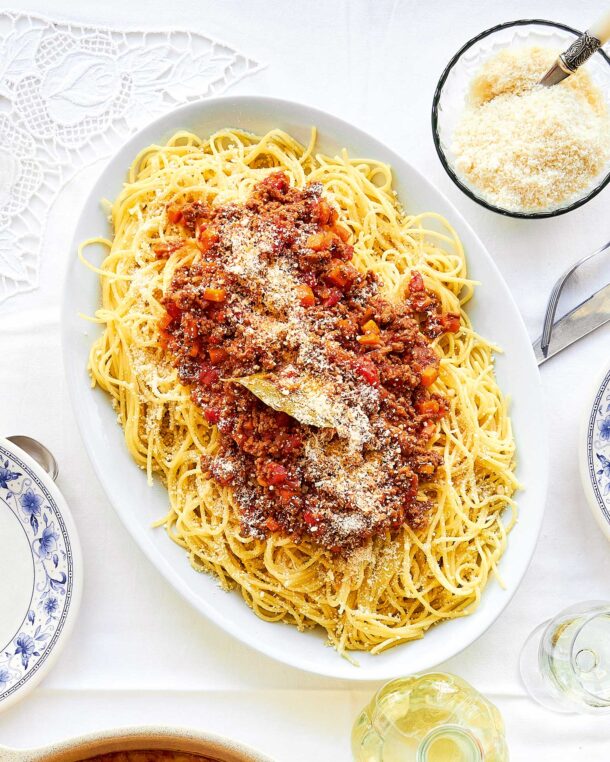 Κυριακή – Μακαρονάδα με κιμά σε πιατέλα