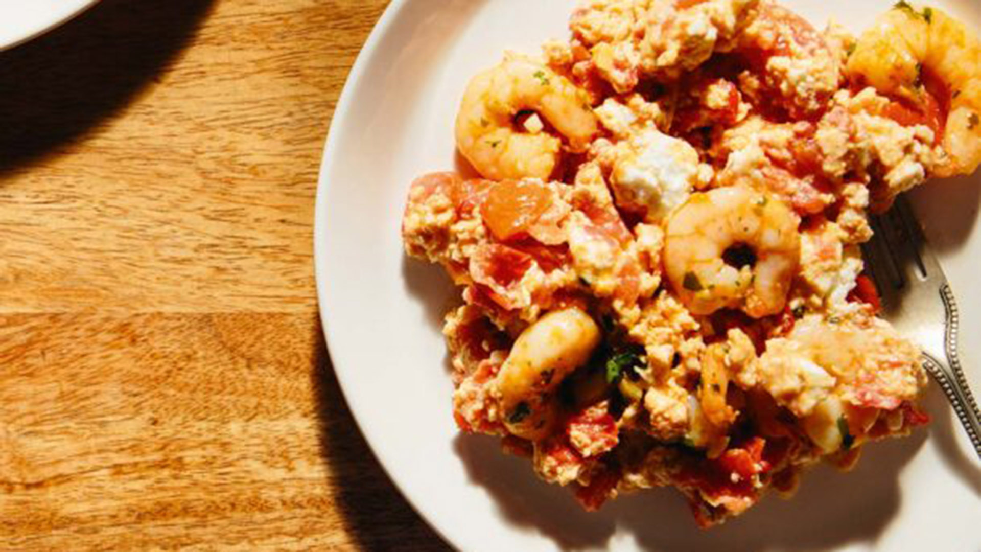 - Προσθέτουμε τις γαρίδες και μαγειρεύουμε για άλλα 5 λεπτά.
