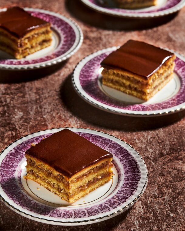 Στρώσεις από λεπτά φύλλα ζύμης κολλημένα μεταξύ τους με μαρμελάδα και καρυδόψιχα και στο τέλος, μια στρώση σοκολάτας να επισφραγίσει ότι εδώ μιλάμε για ένα γλυκό που δεν πρέπει να προσπεράσεις.