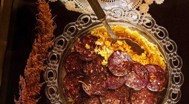 - Καλύπτουμε την επιφάνεια του πιλαφιού με τις φέτες σουτζουκιού και αποσύρουμε από τη φωτιά.