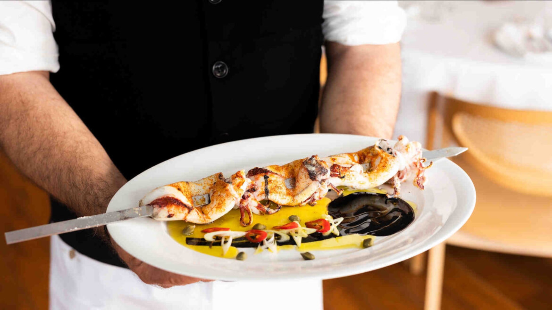 Βαρύ πυροβολικό το τρυφερό καλαμάρι κοντοσούβλι με το μελάνι, που ανακατεμένο με κάππαρη και καυτερή πιπερίτσα μαυρίζει το πιάτο. Κάθε τραπέζι σχεδόν έχει και από ένα. Το φιλέτο μπαρμπούνι, που το κάνουν ρολάκια, το περνούν και αυτό σε σούβλα, το ψήνουν ψηλά, σε απόσταση από τη φωτιά, και το σερβίρουν με μια πινελιά παντζαριού «κεντημένη» με κάππαρη, καππαρόφυλλα, ανθάκια κρίταμου τουρσί και κρεμμύδι, για μένα είναι καλύτερο. Και ο ψιλός τραχανάς, που φτιάχνουν στην Αύρα Τρικάλων οι γυναίκες της περιοχής με γάλα από τις αγελάδες στεπικής φυλής του Δημήτρη Δήμου, μαγειρεμένος με γαρίδες, μύδια, κυδώνια και αυγοτάραχο, σπυρωτός, όλο γεύση, γεμίζει το στόμα σου θάλασσα.