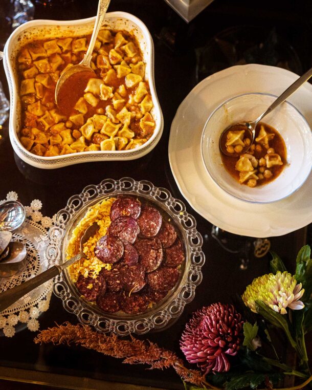 Η οικογένεια του Μιράν Κουρουνλιάν είναι παστουρματζήδες πάππου προς πάππου – ασκούν την τέχνη στην Ελλάδα τουλάχιστον εδώ και τρεις γενιές. Είχαμε την ευκαιρία να τους γνωρίσουμε καλύτερα σε ένα αρμένικο τραπέζι στο σπίτι τους που κράτησε για ώρες, με πολύ φαγητό και πολλές ιστορίες από χαμένες πατρίδες. Η Μάιντα, η Λούση και η Λιζέτ κάθισαν για ώρες υπομονετικά στην κουζίνα των Κουρουνλιάν και ετοίμασαν περίτεχνες συνταγές, πεποικιλμένες από τις επιρροές, τις ερμηνείες και τις συγχωνεύσεις που προέκυψαν από τους τόπους προέλευσης των προγόνων τους. Εκείνες μας έδωσαν αυτή την συνταγή.