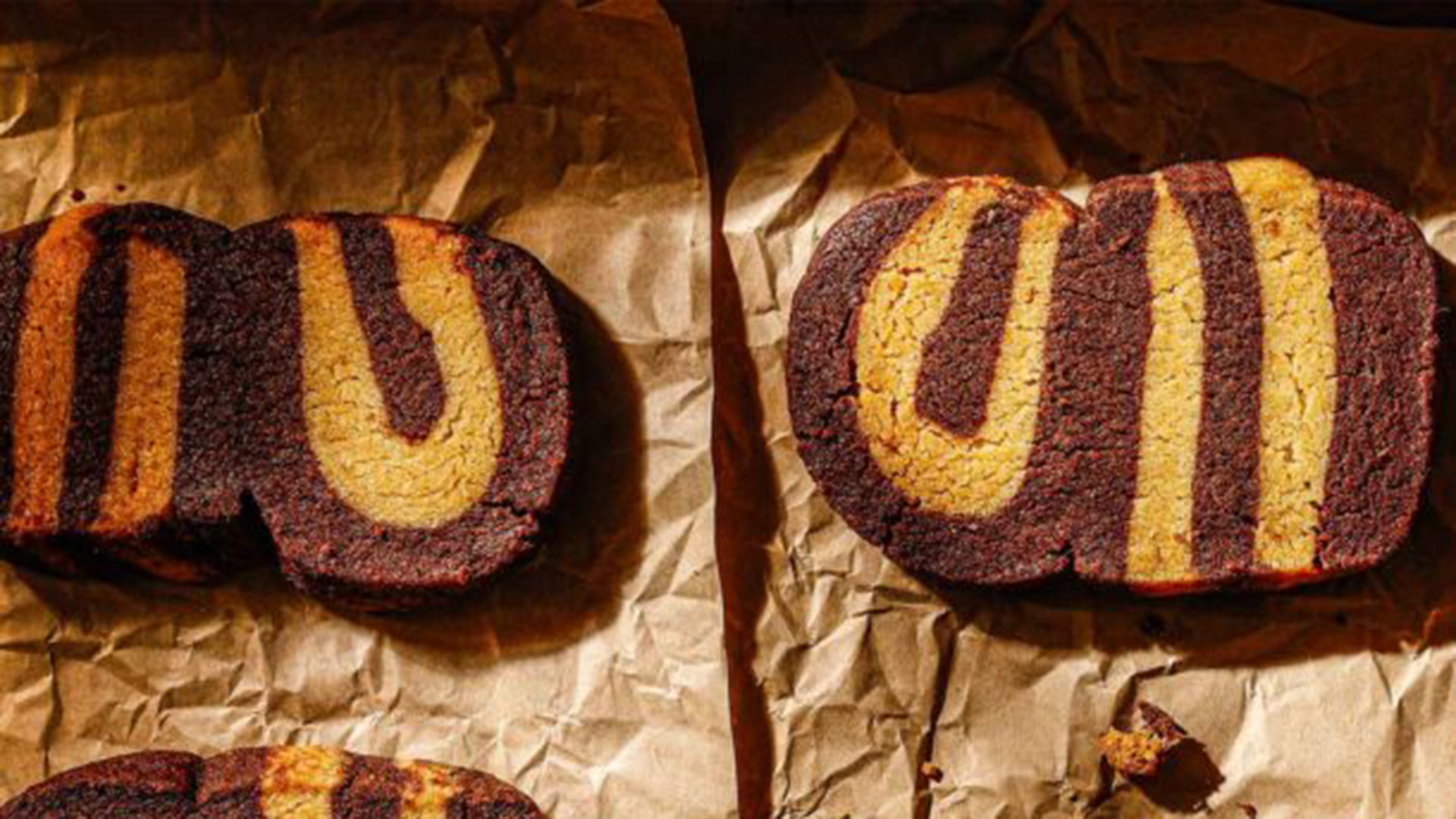 - Χωρίζουμε τη ζύμη σε δύο ίσα μέρη. Στο ένα προσθέτουμε το κακάο και το ενσωματώνουμε στη ζύμη με μια σπάτουλα σιλικόνης.