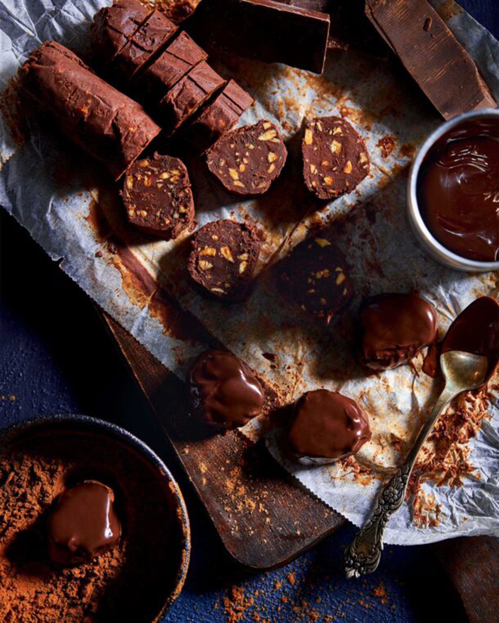 - Βουτάμε μία μία τις φέτες στη λιωμένη σοκολάτα, τις τινάζουμε να πέσει η περίσσεια και είτε τις αφήνουμε πάνω σε μια λαδόκολλα να στεγνώσουν (αν θέλουμε να έχουν σοκολατένια επικάλυψη) είτε τις ρίχνουμε μέσα στο κακάο και τις γυρνάμε να καλυφθούν καλά. Και στις δύο περιπτώσεις, αφήνουμε τα σοκολατάκια να στεγνώσουν καλά πάνω σε λαδόκολλα για μισή ώρα.