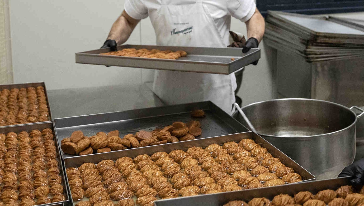 Στο πολίτικο ζαχαροπλαστείο της Νέας Φιλαδέλφειας, που ταΐζει εδώ και μισό αιώνα τη γειτονιά με ανατολίτικες λιχουδιές, από εκμέκ και καζάν ντιπί μέχρι τουλουμπάκια και κουρκουμπίνια, ετοιμάζουν αυτή την εποχή και ωραία μελομακάρονα, σκουροψημένα, τραγανά εξωτερικά και καλομελωμένα και ζουμερά μέσα. Τα βρίσκουμε και σε εκδοχή μπουκίτσας, γεμιστά με καρύδι. Γ.Π.