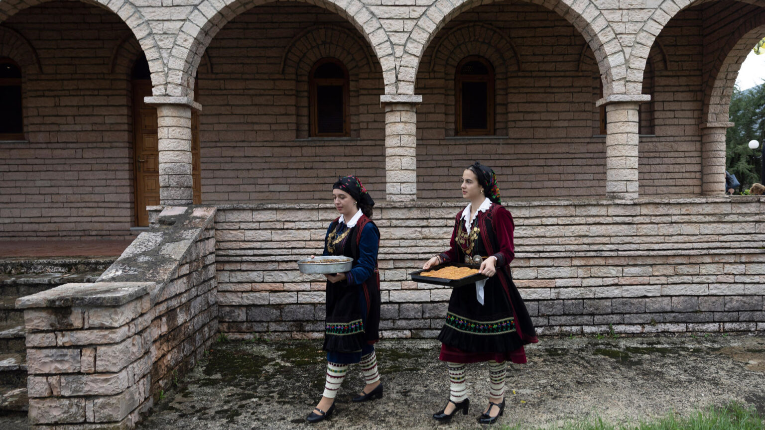 Οχτώ το πρωί στο αεροδρόμιο των Ιωαννίνων. Ο Κώστας, που μας περιμένει μέσα στη βροχή, θα είναι σήμερα ο οδηγός μας. Μαζί του θα περάσουμε τα σύνορα και μετά, άλλη μια ώρα οδήγηση μέχρι τη Λειβαδιά του δήμου Φοινίκης, όπου γυναίκες της ελληνικής μειονότητας της περιοχής έχουν ξυπνήσει ακόμα πιο νωρίς, έχουν ανοίξει φύλλα και έχουν στρώσει τραπέζια γεμάτα με παραδοσιακές πίτες. Όσο προχωράμε προς τον συνοριακό σταθμό της Κακαβιάς το τοπίο γίνεται όλο και πιο όμορφο. Έχει ομίχλη και προειδοποιητικές πινακίδες για αγριογούρουνα. Περνάμε ένα πατσατζίδικο που φαίνεται κλειστό. Στην άκρη του δρόμου κάποιος πουλάει τα πρώτα κάστανα της εποχής. Ο Κώστας, μεγαλωμένος στη Βόρεια Ήπειρο, κάνει σχεδόν κάθε μέρα την ίδια διαδρομή. Οι τελωνειακοί τον ξέρουν και τον χαιρετάνε. Είναι υπάλληλος του δήμου Δρόπολης αλλά μαζί με τη γυναίκα του και τα παιδιά τους ζουν στα Ιωάννινα. Πρόκειται για μια διαδρομή που πολλοί Βορειοηπειρώτες κάνουν συχνά: για γιατρούς, για αναψυχή, για τα ψώνια της εβδομάδας.