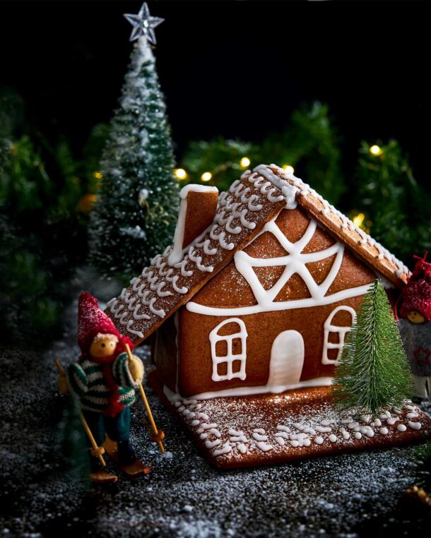 Η συνταγή για τη ζύμη είναι απλή, ωστόσο η ίδια η κατασκευή, το «χτίσιμο» του σπιτιού, είναι κάπως μπελαλίδικη διαδικασία, που όμως παρέα με τα παιδιά θα γίνει διασκεδαστική και απολαυστική για όλους. Το οικογενειακό χριστουγεννιάτικο κάπκεϊκ, τα μπισκότα που θυμίζουν ραβδιά νεράιδας ή τα σοκολατένια μπισκότα – δεντράκια με μπάλες από χρωματιστή καραμέλα είναι μερικές μόνο ακόμα από τις συνταγές που μπορούμε να δοκιμάσουμε.