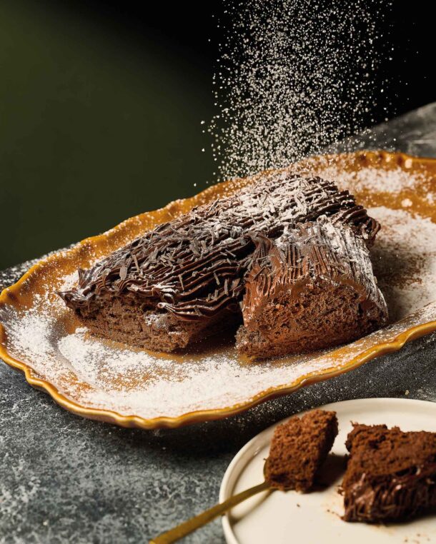 Φουλ στη σοκολάτα, πασπαλισμένος με τριμμένη κουβερτούρα και άχνη ζάχαρη, αυτός ο κλασικός χριστουγεννιάτικος κορμός, bûche de nοël, όπως τον λένε οι Γάλλοι, μια που θυμίζει κορμό δέντρου, δεν θέλει κόπο, θέλει τρόπο.