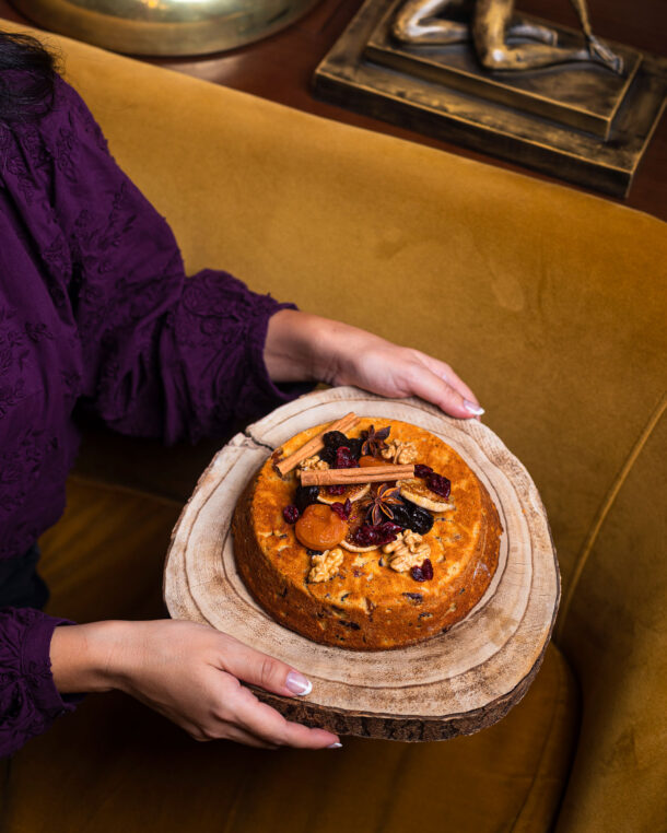 Αυτό το κέικ είναι το κλασικό χριστουγεννιάτικο με ξερά φρούτα, πλούσιο και αρωματικό. Η διαφορά με το κλασικό είναι ότι δεν περιέχει καθόλου ζάχαρη ούτε άλλο γλυκαντικό. Εχει μια ήπια φυσική γλύκα από τα ξερά φρούτα. Ιδανικό για το τσάι και τον καφέ.