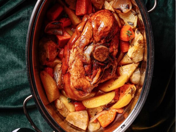 Τι προτείνει ο έμπειρος σεφ; Μπούτι γουρουνόπουλου, που ψήνεται πλαισιωμένο από πατάτες, γλυκοπατάτες, καρότα, σελινόριζα και κρεμμύδια μέχρι να ροδίσει, και κρασάτο αγριογούρουνο με κυδώνια που μοσχοβολάει κανέλα, μπαχάρι και δεντρολίβανο – η σάλτσα γίνεται απλά πεντανόστιμη. Ζουμερή πάπια στη γάστρα, αρωματισμένη με κανέλα, γαρίφαλο, φλούδες εσπεριδοειδών και αστεροειδή γλυκάνισο, και ένα μοσχαρίσιο κόντρα σε ενιαίο κομμάτι με καρότα, που θέλει λιγότερο από μια ώρα στον φούρνο. Μέχρι να στρώσετε το τραπέζι, να σκαρώσετε μια ωραία σαλάτα και να ανοίξετε το κρασί (ένα Cabernet Sauvignon είναι πολύ ταιριαστή παρέα) θα είναι κομμένο σε φέτες στην πιατέλα.