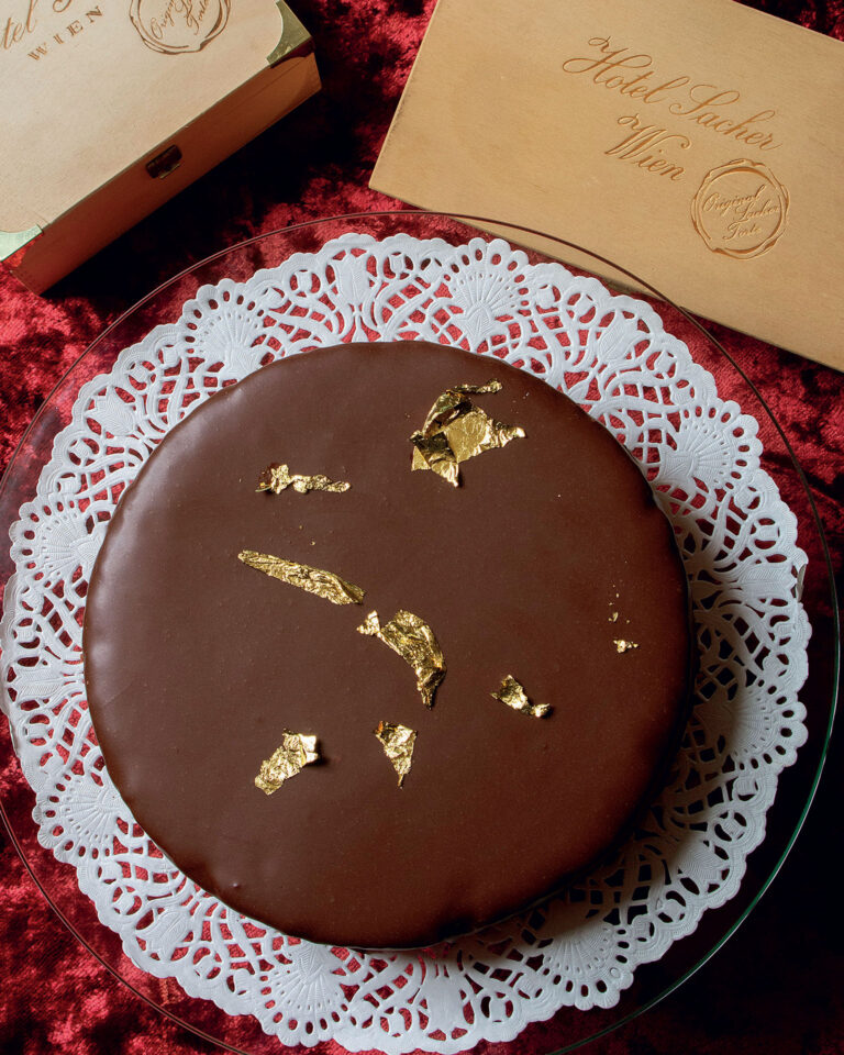 Η κλασική βιεννέζικη συνταγή για sachertorte. Είναι ένα πυκνό κέικ σοκολάτας με μια στρώση μαρμελάδα βερίκοκο ανάμεσα και από πάνω ένα σκληρό γλάσο σοκολάτας.