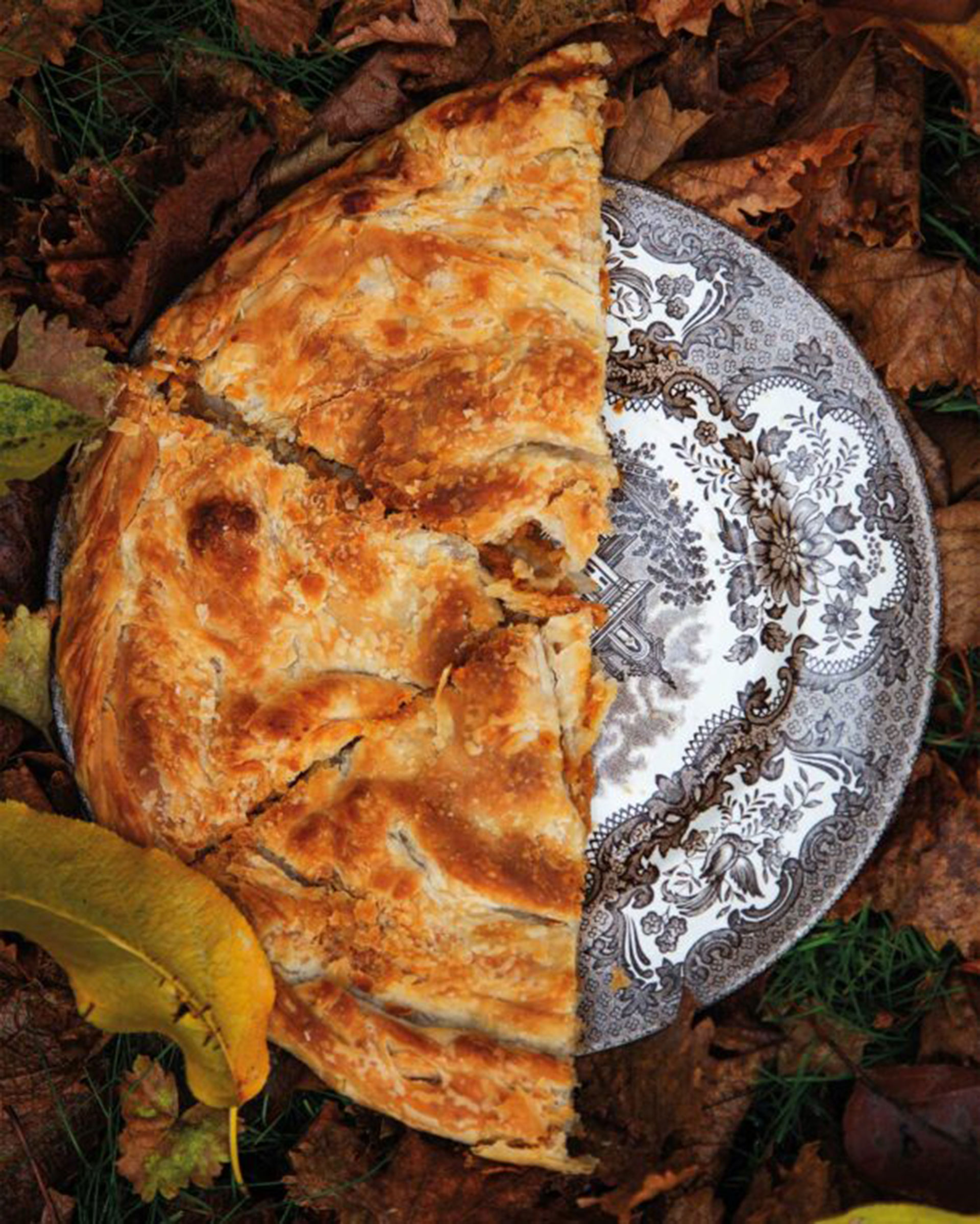 Στους πάγκους, τα ζυμαράκια της κάθε πίτας τα γυναικεία χέρια τα ανοίγουν ταχύτατα σε λεπτά φύλλα που τυλίγονται ρολό και στρίβονται σε σαλίγκαρους, πριν ανοίξουν ξανά σε φύλλο για να κλείσουν μέσα τους τη γέμιση, το «ζαχερέ», και να ψηθούν. Το ζυμάρι είναι κοινό για σχεδόν όλες τις πίτες και το φτιάχνουν απλά, με νερό και αλεύρι, προσθέτοντας λίγο λάδι και ξίδι για να γίνουν τραγανά τα φύλλα. Το αφήνουν να ξεκουραστεί όσο να πιουν έναν καφέ και το ανοίγουν σε δύο φύλλα – ένα πάνω, ένα κάτω. Τα ζυμαράκια κάθε φύλλου τα ζυγίζουν με ακρίβεια: 350 γρ. το καθένα. Το πάνω φύλλο της πίτας είναι γεμάτο πλούσιες πτυχώσεις και ζάρες, για να είναι απολαυστικό στο δάγκωμα. Αυτός ο σαλίγκαρος από τυλιγμένο ζυμάρι στο ψήσιμο αφήνει τις δίπλες να ξεχωρίζουν μία μία, σαν σφολιάτα τραγανή και πλούσια.