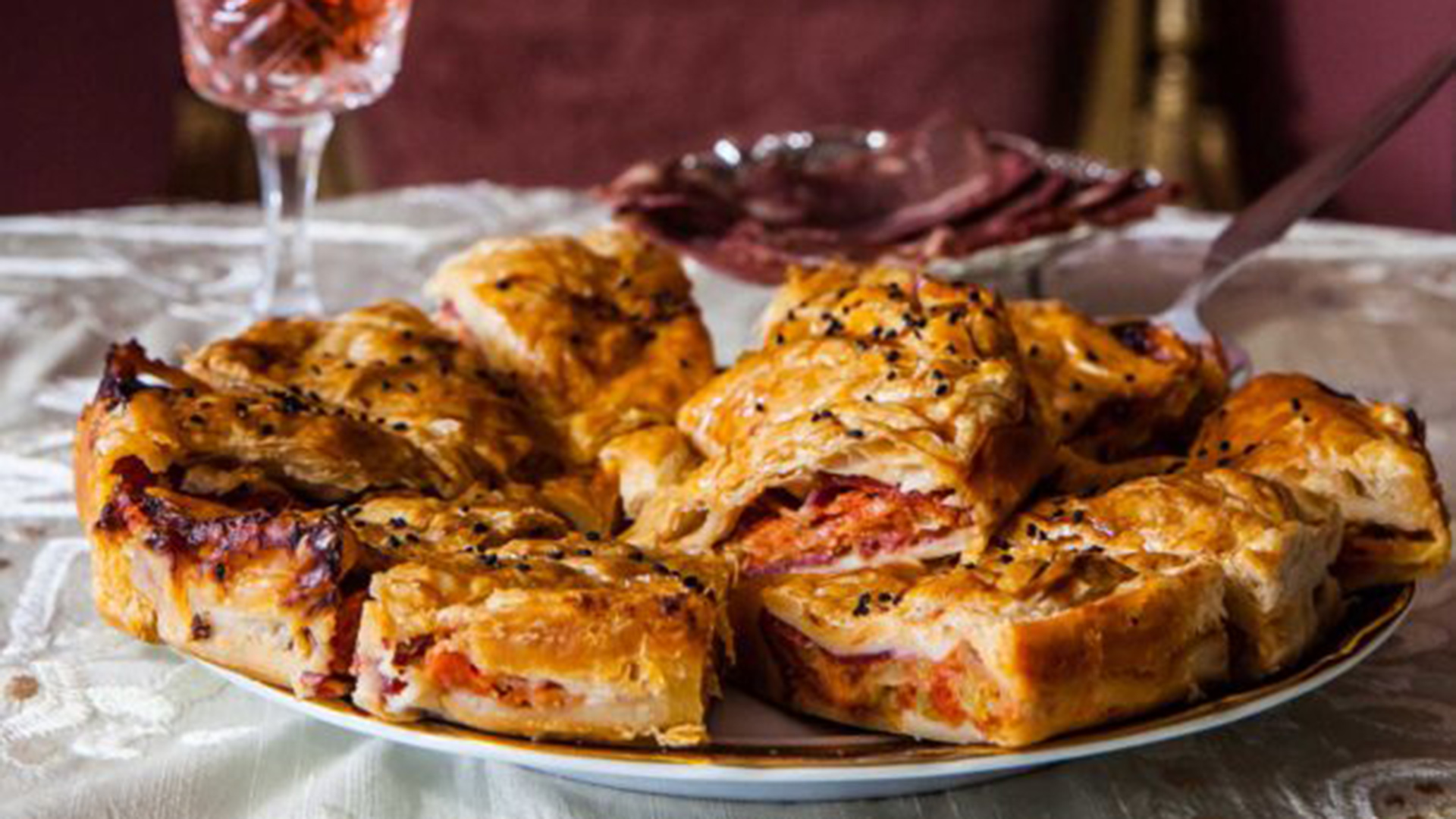 Πλουσιοπάροχα ήταν τα τραπέζια των Χριστουγέννων και της Πρωτοχρονιάς – ή αλλιώς της «Καλής Βραδιάς»– στην Πόλη. Στρώνονταν με λευκά φρεσκοσιδερωμένα τραπεζομάντιλα και στραφταλιστά σερβίτσια και γέμιζαν μεζέδες κρύους και ζεστούς, αφράτα πιλάφια και πιάτα γιορτινά. Όπως γράφει η Σούλα Μπόζη στο βιβλίο της Η πολίτικη κουζίνα των τεσσάρων εποχών (εκδ. Πατάκη), «απαραίτητοι ήταν οι σπόροι, ρύζι, ξηροί καρποί, ρεβύθια, που συμβολίζουν διαχρονικά το “Μπερεκέτι”, την ευημερία που προσδοκούμε και ευχόμαστε». Όπως εξηγεί η Πολίτισσα συγγραφέας και ερευνήτρια, η κότα και ο κόκορας, σύμβολα γονιμότητας, ήταν από τα πιο χαρακτηριστικά συστατικά της γιορτής. Η παλατιανή κότα, γεμιστή με κιμά κοτόπουλου και πολίτικα μπαχαρικά, που μας έφτιαξαν κάποια περασμένα Χριστούγεννα η Νένα Ισμυρνόγλου και η Νίκη Χρυσανθίδου και η κότα που γεμίζεται με κιμά, συκωτάκια, κάστανα και ξερά δαμάσκηνα που μας μαγείρεψε η κυρία Ελένη Φίλη-Νιότη, μια αρχόντισσα Πολίτισσα παλαιάς κοπής, δείχνουν την προσοχή και τη φροντίδα που έδιναν στο γιορτινό τραπέζι. Είναι κάτι που φαίνεται και στις υπόλοιπες συνταγές που έχουμε σε αυτή τη μικρή συλλογή. Από την πασπαλισμένη με μαυροκούκι παστουρμαδόπιτα, μέχρι το περίτεχνο πολίτικο νερομπούρεκο και το γιορτινό πλιγούρι με κάστανα, κουκουνάρια και σταφίδες, που είναι ένα θαυμάσιο συνοδευτικό για το κυρίως πιάτο.