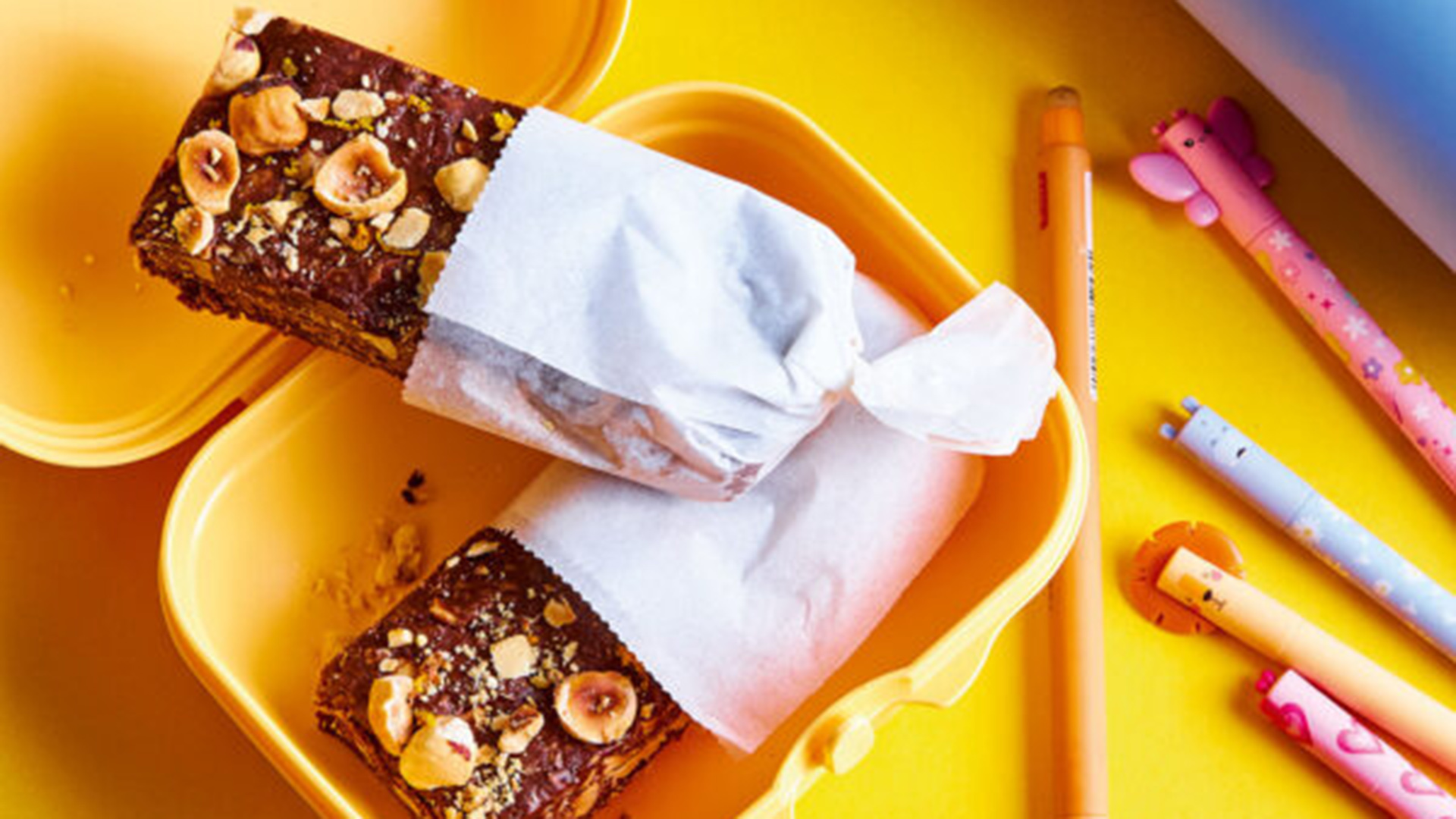 - Πασπαλίζουμε με λίγα χοντροκομμένα φουντούκια και χαράσσουμε μπάρες στις διαστάσεις που επιθυμούμε (ένα καλό μέγεθος μπάρας είναι 5 x 10 εκ.).