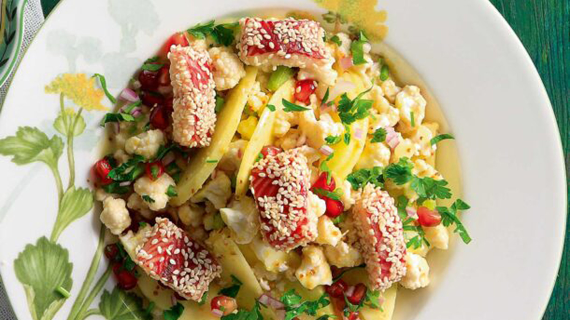 - Σκορπίζουμε το χέλι με το σουσάμι πάνω στη σαλάτα και σερβίρουμε.