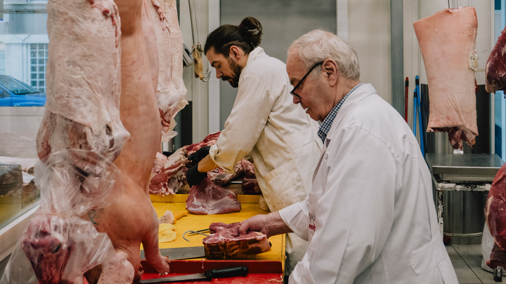 Στην οδό Πύρρωνος στο Παγκράτι το κρεοπωλείο του Παπούλια είναι εδώ και χρόνια προορισμός για καλοφαγάδες, όχι μόνο της γειτονιάς αλλά και από όλη την Αθήνα. Και οι σεφ εμπιστεύονται τον κύριο Παναγιώτη, τον κρεοπώλη της Σπονδής, που εκτός από το γειτονικό αστεράτο εστιατόριο προμηθεύει πολλά ακόμη από τα καλά εστιατόρια της πόλης με ό,τι χρειαστούν – από ιδιαίτερες κοπές μέχρι γίδα και βετούλι. Πενήντα χρόνια στο επάγγελμα, η φήμη του εξαπλώθηκε κυρίως από στόμα σε στόμα χτίζοντας το σταθερό πελατολόγιο. Το ίδιο σταθερές είναι και οι συνεργασίες με τους προμηθευτές του, ένα δίκτυο κτηνοτρόφων την πλειονότητα των οποίων έχει γνωρίσει, έχει δει από κοντά τα κοπάδια τους και έχει επισκεφθεί τα σφαγεία τους. Αν τον ρωτήσετε, θα σας συμβουλέψει ώστε επιλέξετε το σωστό κρέας για το φαγητό που πρόκειται να ετοιμάσετε καθώς, όπως λέει, «το θέμα είναι να το πάρει ο άλλος και να το ευχαριστηθεί, όχι απλά να ξεπουλήσεις». Στο μαγαζί του, εκτός από τα κρέατα, φέρνει και μερικά διαλεχτά προϊόντα, μεταξύ των οποίων φέτα και αφράτο, γαλατένιο ανθότυρο από μικρό τυροκομείο στο χωριό του, τον Άγιο Πέτρο Αρκαδίας.