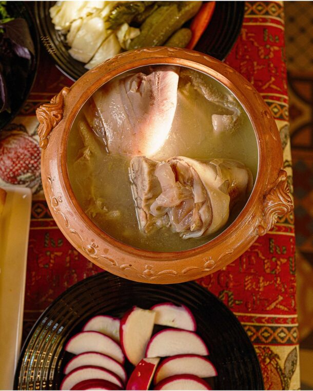 - Συνοδεύεται με βότκα, τουρσιά και ραπανάκια.