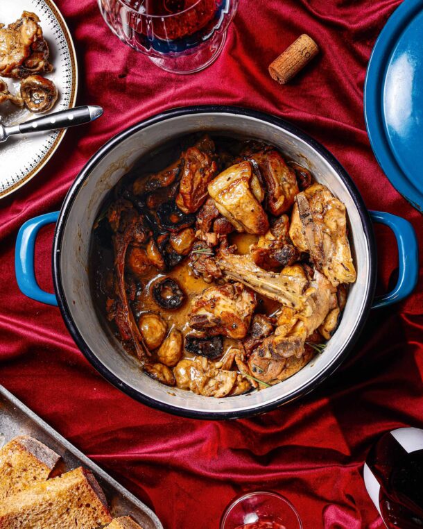 Χοιρινό, κατσίκι και κόκορας πρωταγωνιστούν σε τέσσερα υπέροχα κατσαρολάτα φαγητά, σαλτσερά, χειμωνιάτικα, με λαχανικά, με μανιτάρια, με φρούτα, και πνεύμα γιορτινό (οι γιορτές κρατάνε ακόμη). Ο κρασάτος κόκορας και το χοιρινό με μήλα της Νένας Ισμυρνόγλου φτιάχνονται πολύ εύκολα· σε λίγα λεπτά τα έχουμε καπακώσει και αφήνουμε το κρέας να σιγομαγειρευτεί μέχρι να γίνει τόσο τρυφερό που να κόβεται με το πιρούνι. Και το τσιγαριαστό κατσικάκι με μανιτάρια, όμως, σε συνταγή του Αστέριου Κουστούδη δεν θα σας δυσκολέψει καθόλου. Το ίδιο και το χοιρινό με πράσα και σελινόριζες, το παραδοσιακό κορφιάτικο πιάτο που μας πρότεινε ο Αριστοτέλης Μέγκουλας σε μια λιγότερο μπελαλίδικη εκδοχή, με πεντανόστιμο σούγο, όπως λένε στα Επτάνησα την καλοδουλεμένη σάλτσα του φαγητού.