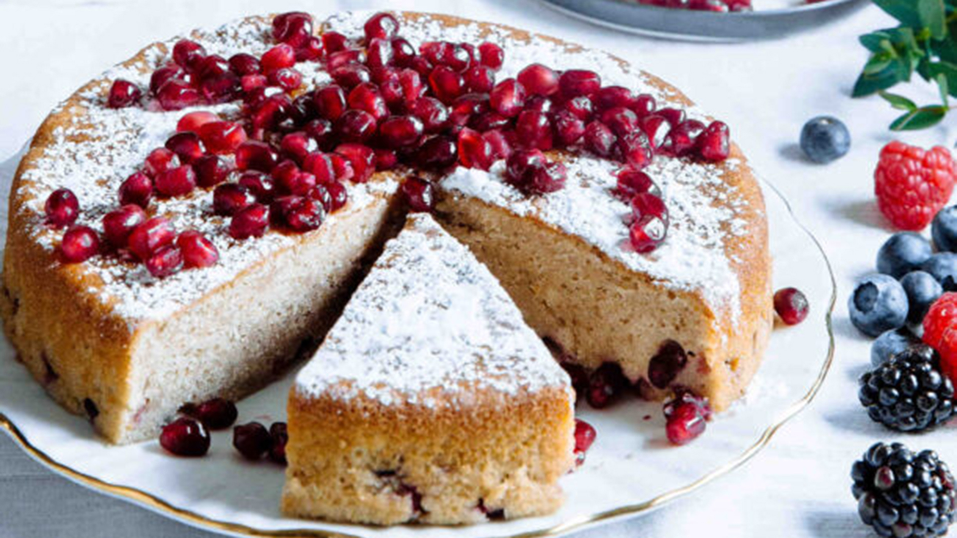 - Το πασπαλίζουμε με άφθονη ζάχαρη άχνη και το στολίζουμε με τους υπόλοιπους σπόρους ροδιού.