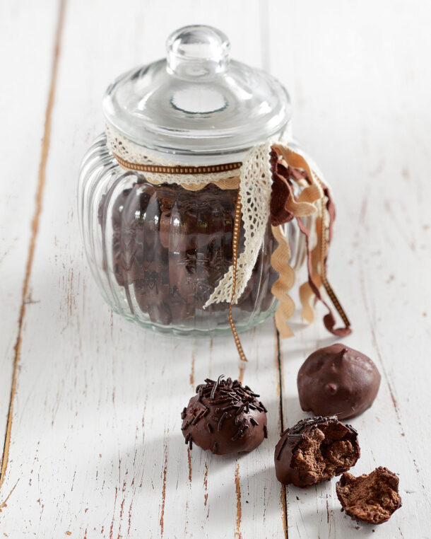 - Βουτάμε προαιρετικά τα μισά σε τρούφα, ενώ αφήνουμε σκέτα τα υπόλοιπα.