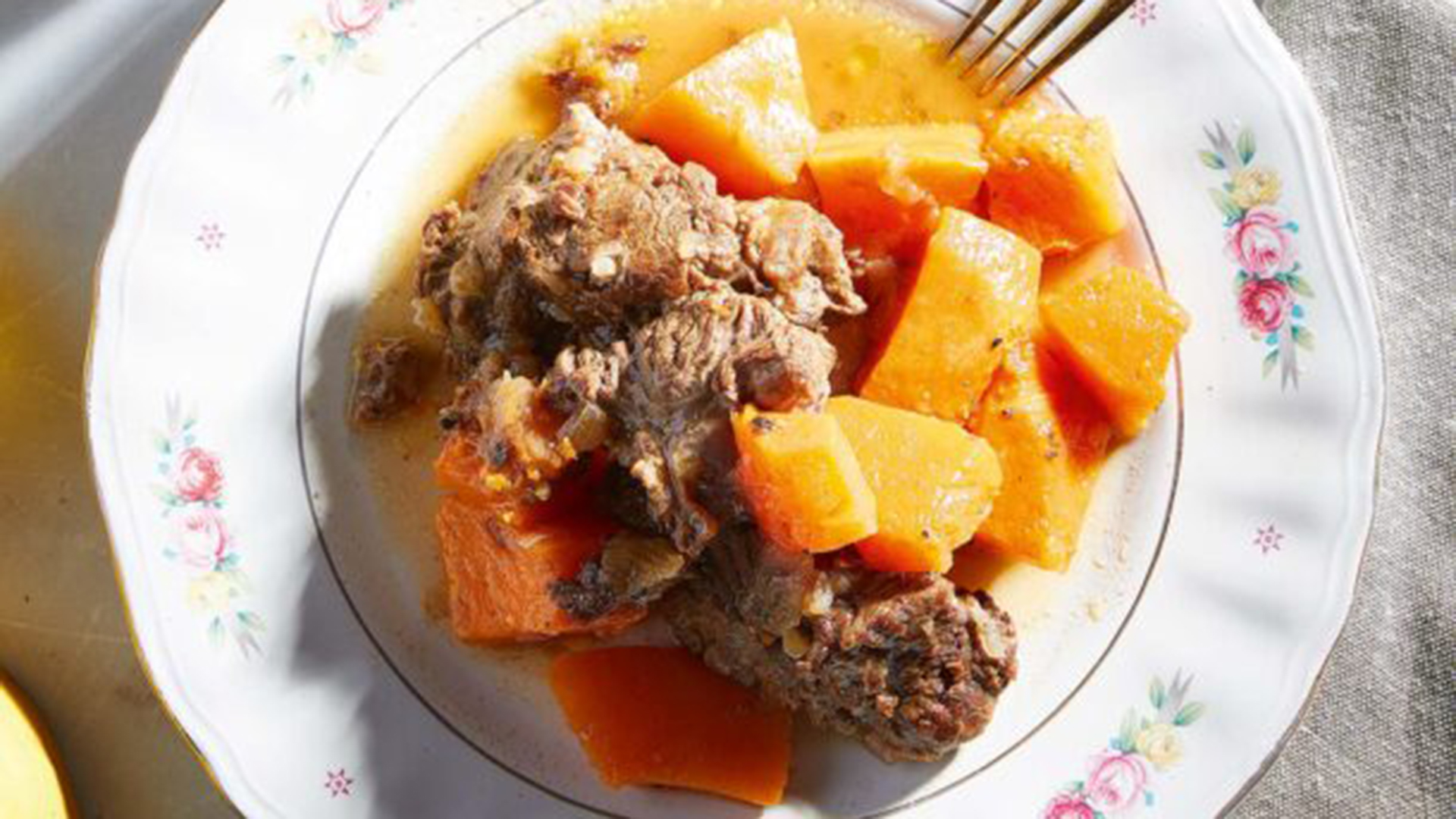- Για το μοσχαράκι με κολοκύθα στην κατσαρόλα, ξεκινάμε αλατοπιπερώνοντας το κρέας.