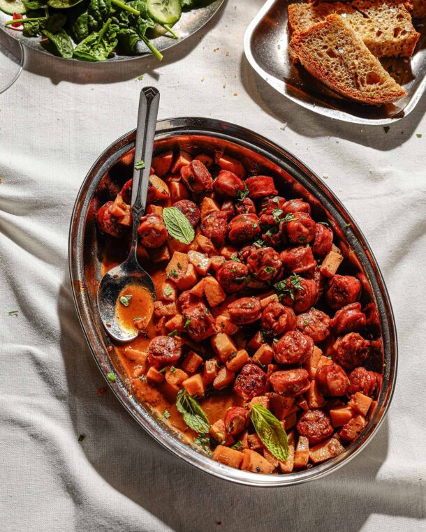 Τα κυδώνια ταιριάζουν υπέροχα με το χωριάτικο λουκάνικο ενώ η γλυκιά Μαυροδάφνη απογειώνει το όλον.