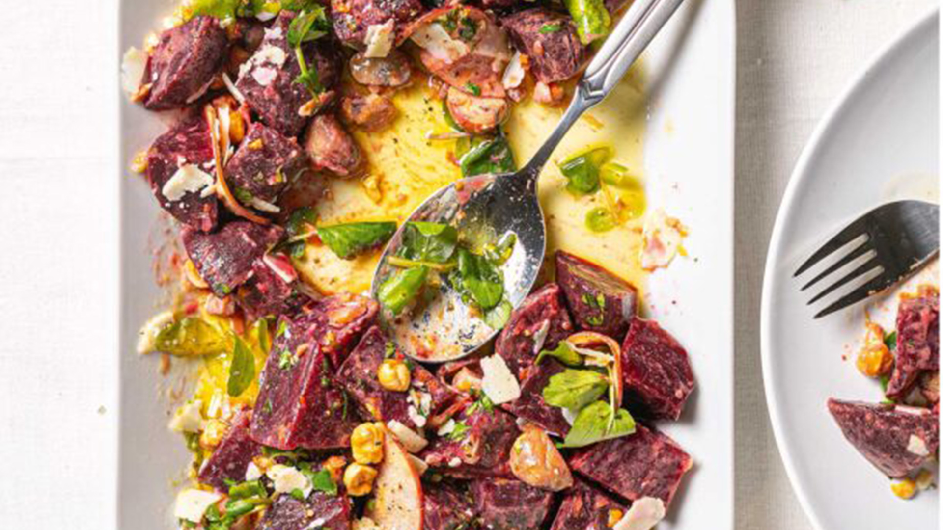 - Για να ετοιμάσουμε την παντζαροσαλάτα με κάστανα, φουντούκια και παλαιωμένο κατσικίσιο τυρί Προθερμαίνουμε τον φούρνο στους 140-150°C. Πλένουμε καλά τα παντζάρια, τα αλείφουμε με το λάδι και τα βάζουμε στη μία μεριά ενός μέτρι- ου λαδωμένου ταψιού. Σε άλλη μεριά του ταψιού βάζουμε τα φουντούκια και σε άλλη τα κάστανα.