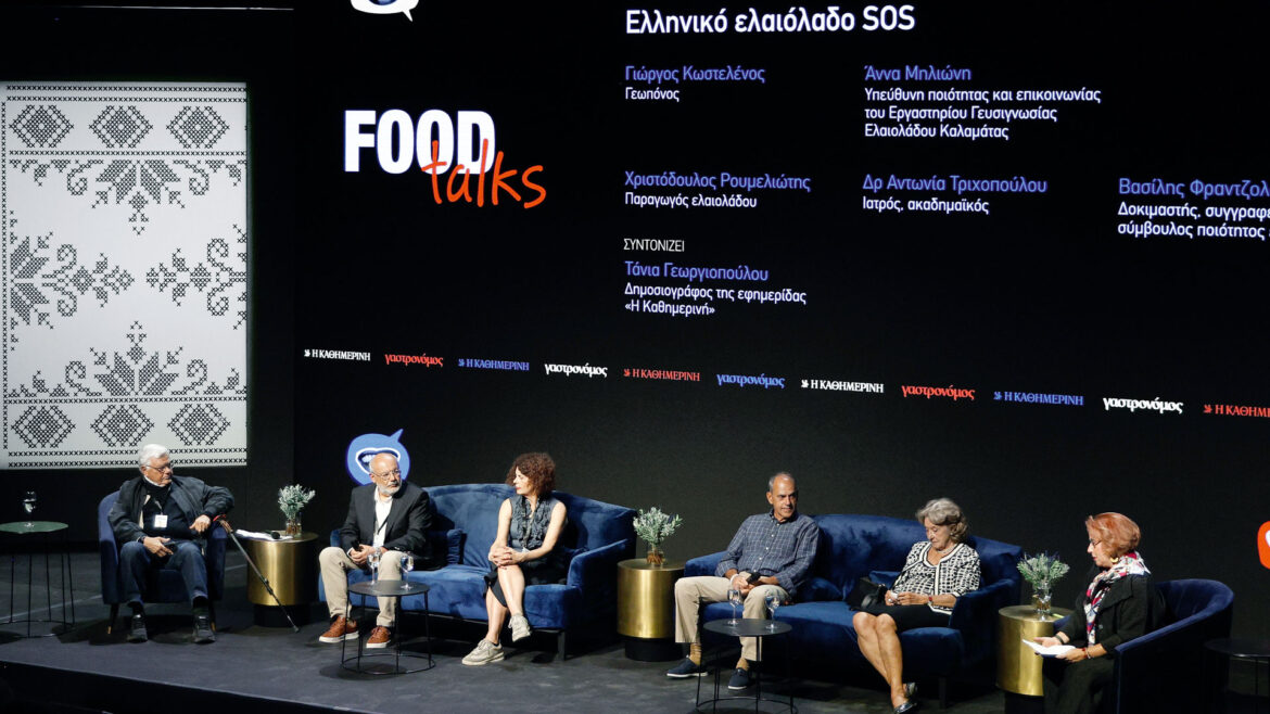 Πώς διαλέγουμε ελαιόλαδο, πώς το συντηρούμε, πόσες ποικιλίες ελιάς διαθέτουμε, πρέπει να το μαγειρεύουμε ή είναι καλύτερα να το τρώμε ωμό, έχουμε πραγματικά το καλύτερο ελαιόλαδο στον κόσμο; Τέτοια ήταν τα ερωτήματα που τέθηκαν στην κρίσιμη συζήτηση για το ελληνικό ελαιόλαδο, η οποία έλαβε χώρα στο πλαίσιο των Food Talks με καλεσμένους ειδικούς από διαφορετικά πεδία –παραγωγή, γευσιγνωσία, επιστήμη και διατροφή–, και συντονίστρια τη δημοσιογράφο της Καθημερινής Τάνια Γεωργιοπούλου.