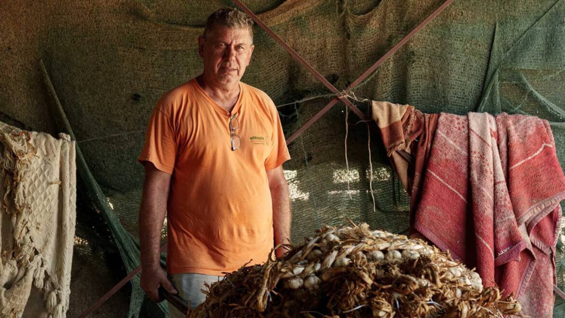 Ύστερα, ξεκινά η διαλογή. Συνήθως κατηγοριοποιούν τα σκόρδα σε τέσσερα μεγέθη κι απομακρύνουν τα χτυπημένα, που τα στέλνουν για μεταποίηση. Έχουν μάθει να κρατάνε σπόρους για την επόμενη χρονιά – ούτε που θυμούνται από πότε ξεκίνησαν το σπορείο. «Τον σπόρο τον πήρα από έναν παλιό παραγωγό, που σήμερα έχει φτάσει 70 χρονών. Από τα 1.500 στρέμματα σκόρδου που καλλιεργούνται κάθε χρόνο στην περιοχή, μόνο τα 200 φυτεύονται με το eNtopio, την παλιά ντόπια ποικιλία δηλαδή. Οι υπόλοιπες είναι κυρίως ξένες ποικιλίες, όπως γαλλικές και κινεζικές, οι οποίες όμως λόγω του μικροκλίματος βελτιώνονται κι αυτές σταδιακά», εξηγεί ο Γιάννης Koυκούτσης, πρόεδρος του συνεταιρισμού από το 2014. Γενικότερα, ο συνεταιρισμός ιδρύθηκε το 1922, αποτελείται από 120 ενεργά μέλη κι εκτός από σκόρδα καλλιεργεί δημητριακά, βαμβάκι και μηδική.
