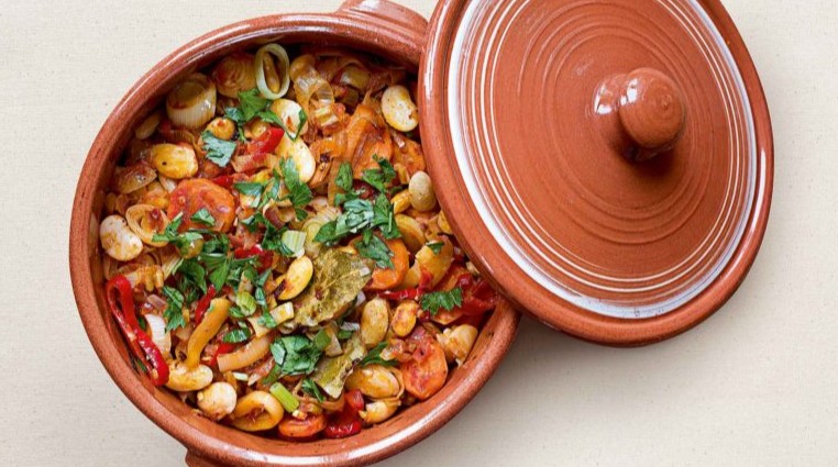 - Κλείνουμε με το καπάκι ή με αλουμινόχαρτο (αν χρησιμοποιούμε ταψί) και ψήνουμε για περίπου 30 λεπτά, μέχρι να μαλακώσουν όλα τα υλικά και να χυλώσει η φασολάδα.