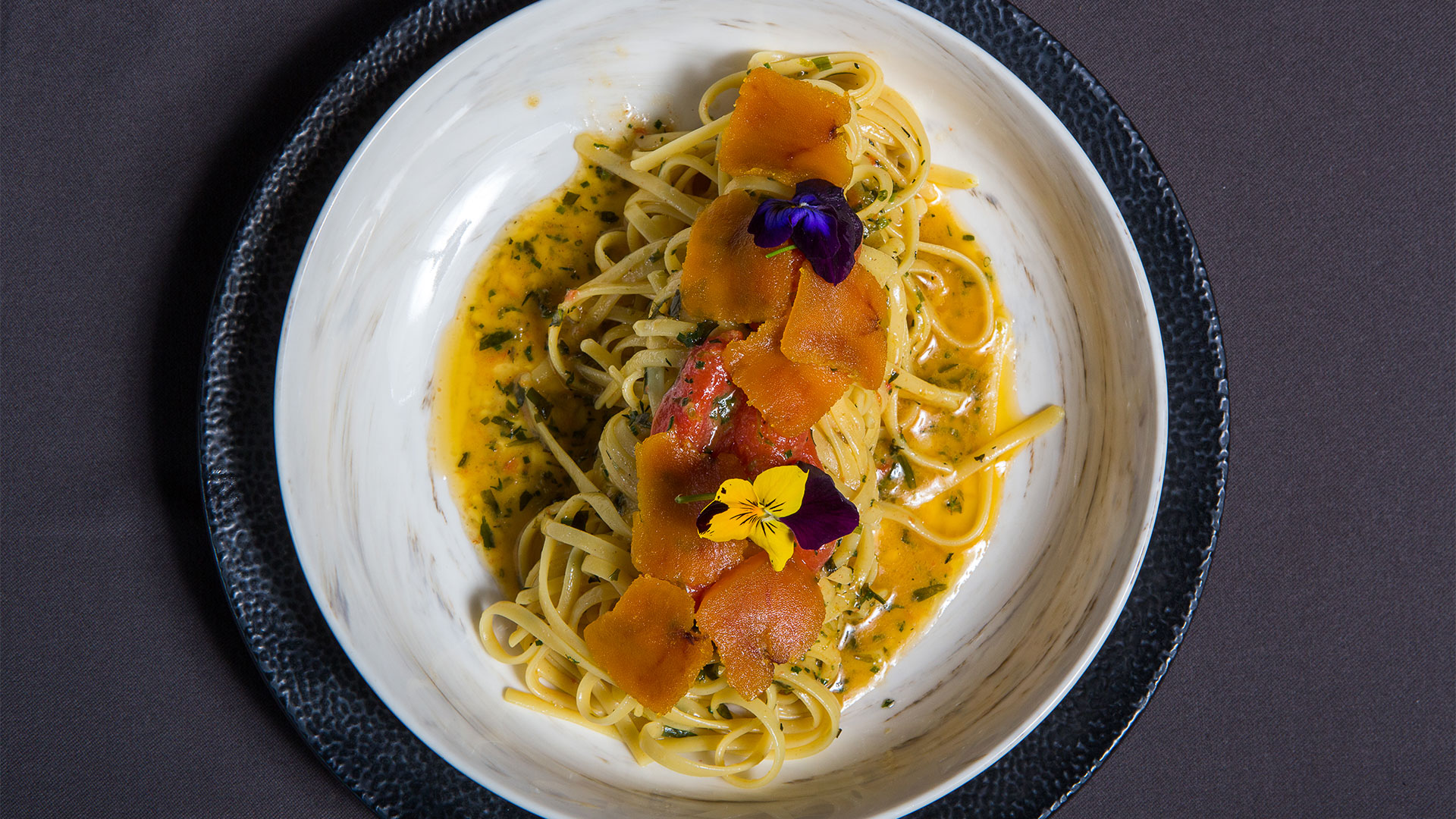 Έντονο, όλο umami, το αυγοτάραχο, είναι σίγουρα ένα υλικό που κοστίζει κάτι παραπάνω, αξίζει όμως: είναι μια μικρή πολυτέλεια που δίνει ξεχωριστό τόνο στο τραπέζι μας. Το απολαμβάνουμε σκέτο αλλά το κόβουμε και σε φετούλες και φτιάχνουμε με αυτό την απίθανη μακαρονάδα που προτείνει ο Λευτέρης Λαζάρου. Ένα λιτό πιάτο, έτοιμο σε λίγα λεπτά, πληθωρικό σε γεύση, γεμάτο θάλασσα.